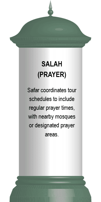 Safar Travel Vietnam thoughtfully incorporates scheduled prayer breaks into all itineraries and can provide: